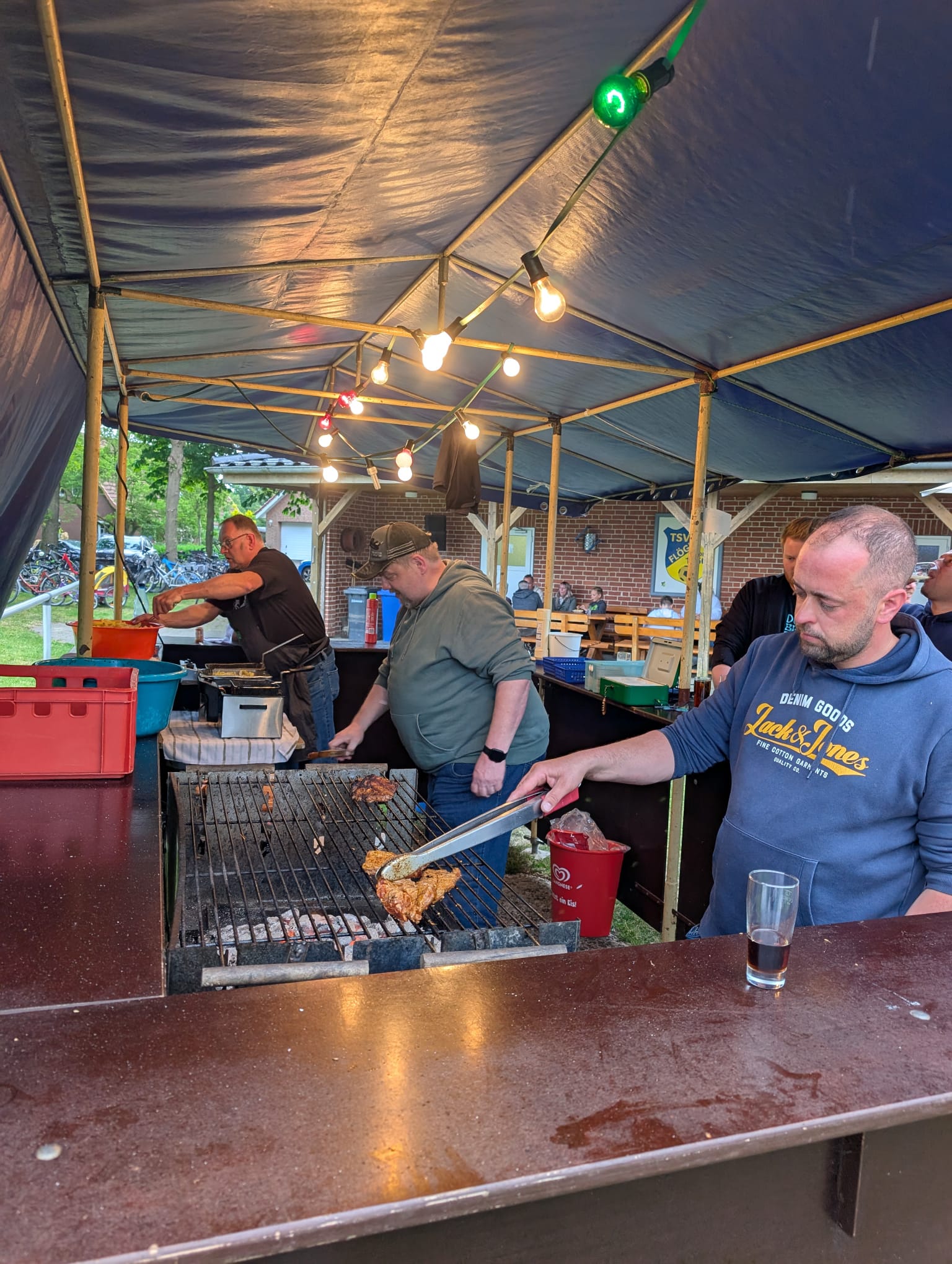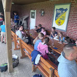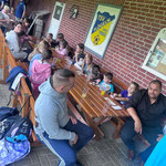 So fuhren wir knapp 25km bei angenehmen Temperaturen und schönem Sonnenschein mit vielen lustigen Unterhaltungen und gleichzeitig sportlicher Betätigung durch Geestland. Wieder angekommen am Sporthaus in Flögeln stand bereits ein großes Buffet mit frischem Fischfilet bereit, zu dem sich noch weitere Personen angemeldet haben, sodass rund 50 Personen am großzügigen Essen teilnahmen, wo für jeden etwas dabei war. Schlussendlich gab es eine rege Beteiligung und ein nettes Ausklingen auf dem Sportplatz.