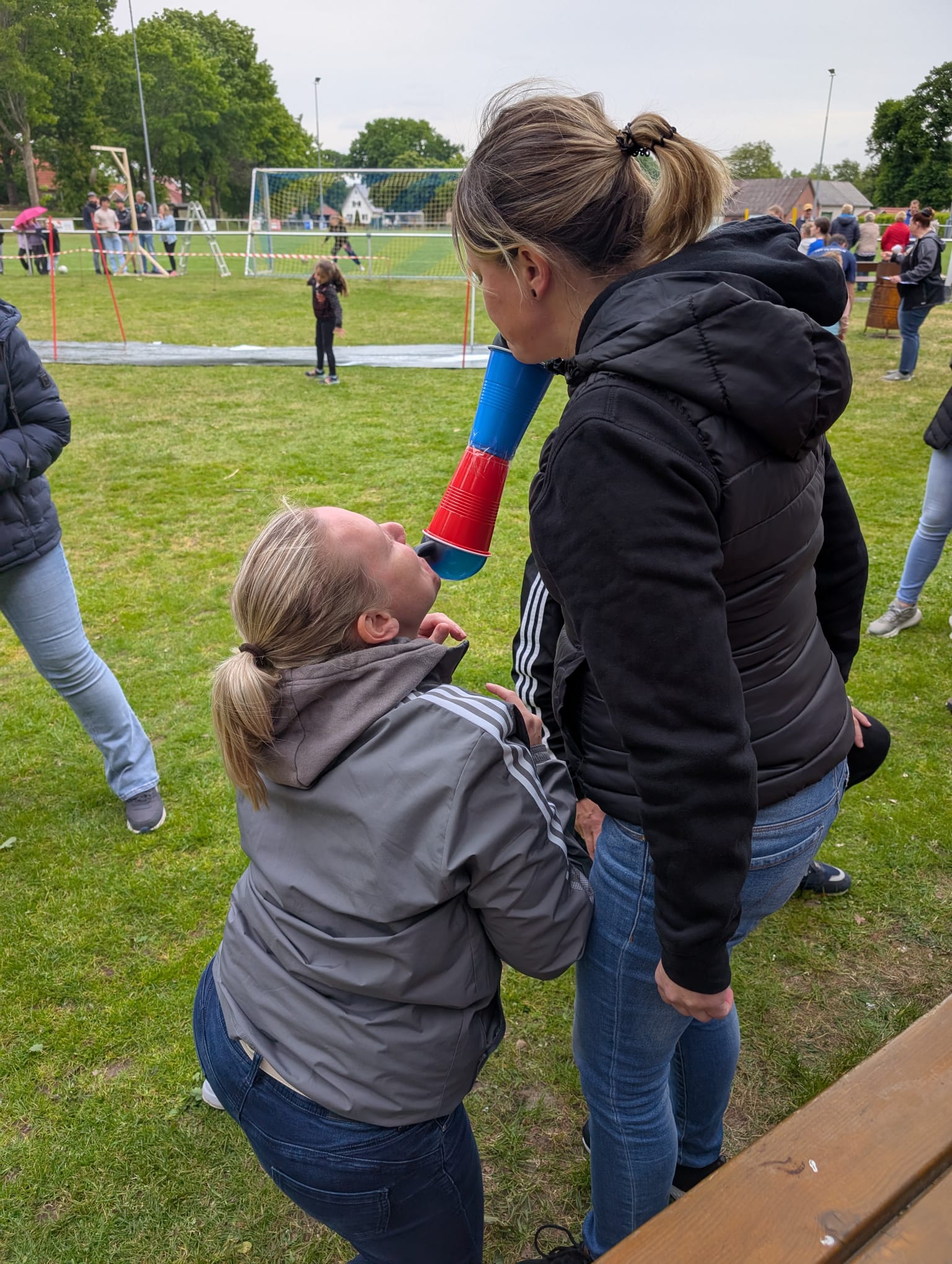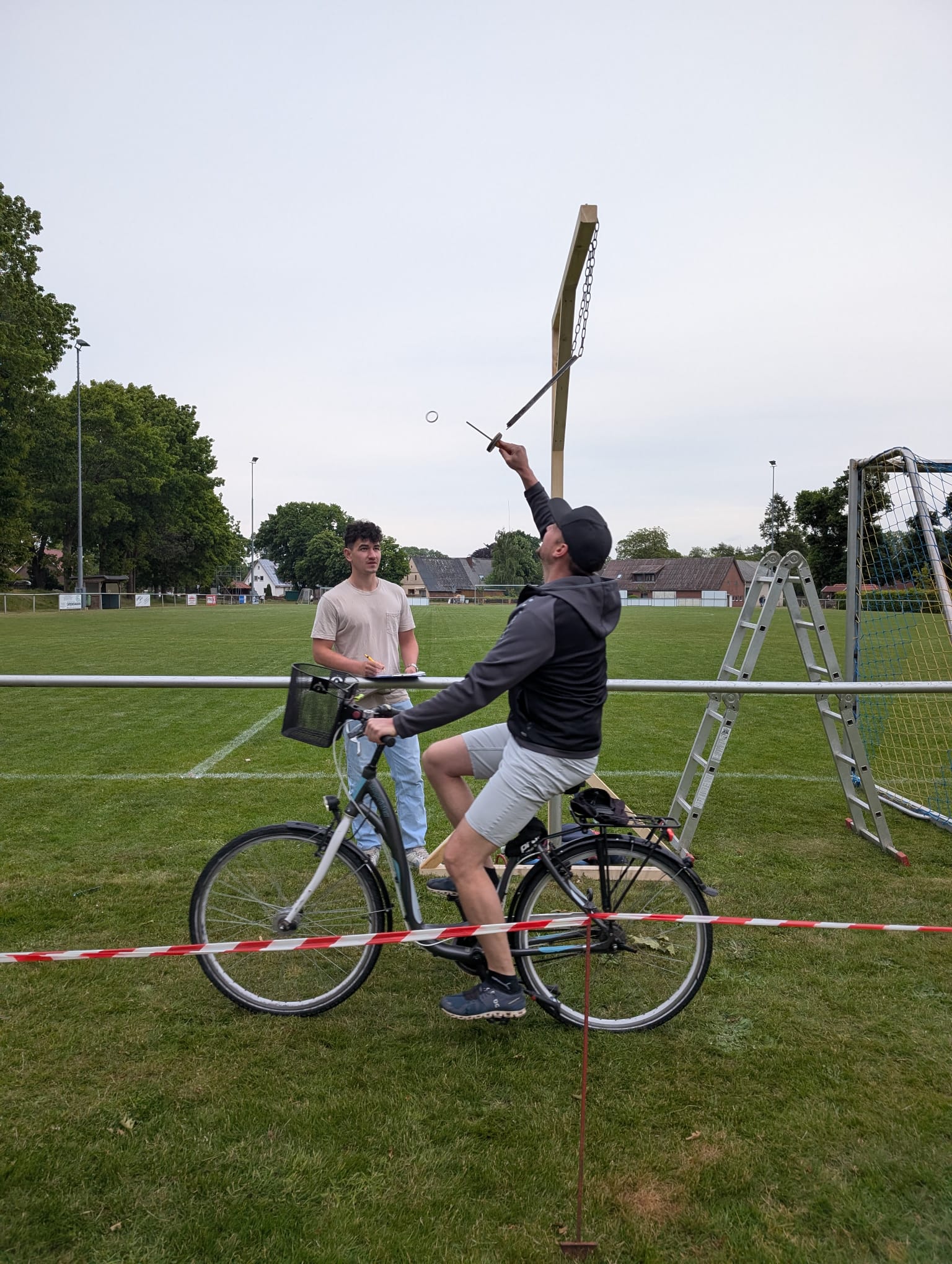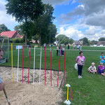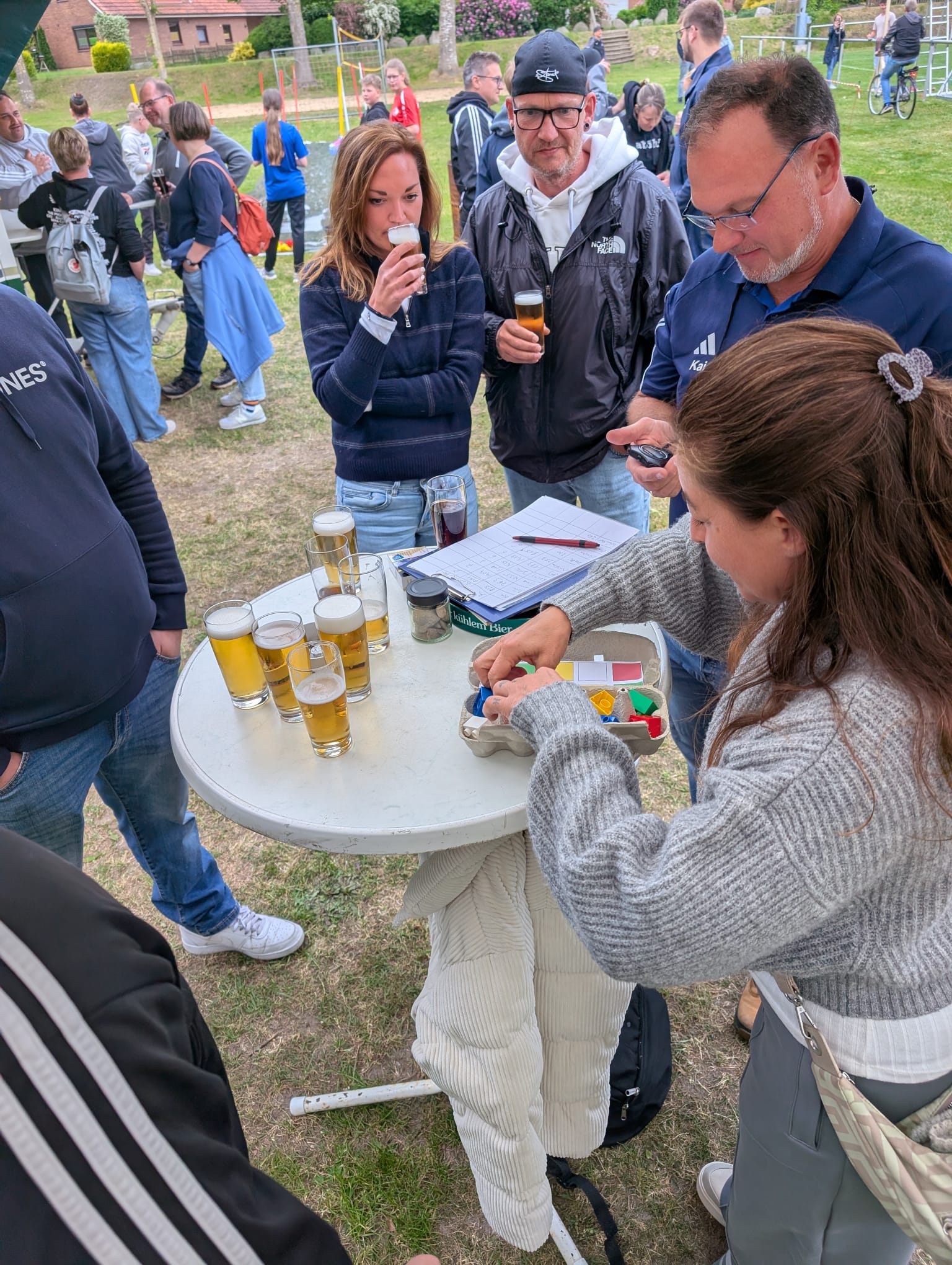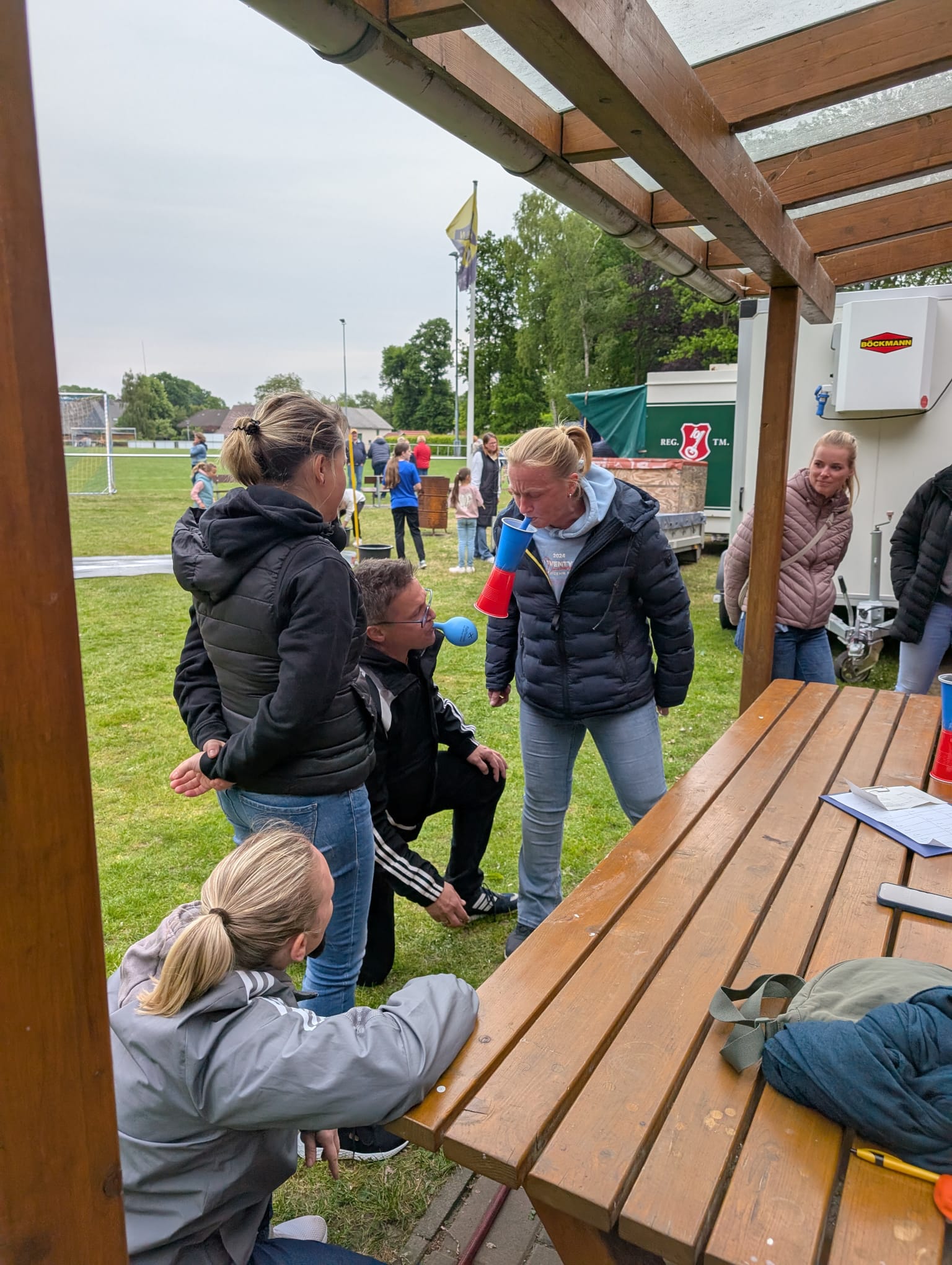 Am Samstag ging es dann bei wechselhaftem Wetter mit dem Sportwochenende weiter und startete mit dem Nachmittagsprogramm für die Kinder. An 8 unterschiedlichen Stationen, die je nach Altersstufe im Schwierigkeitsgrad variierten, hatten die Kinder sichtlich Spaß daran ihre spielerischen Aufgaben zu erfüllen. Neben einem Parcours, Leitergolf und Stab balancieren ging es weiter mit Bierdeckel werfen und einen Turm aufbauen. Währenddessen gab es im Sporthaus ein großes Angebot an Kaffee und Kuchen. Insgesamt waren 40 Kinder am Nachmittag auf dem Sportplatz und erhielten nach den Spielstationen ihre Platzierungen mit diversen Preisen, die zur Auswahl standen.