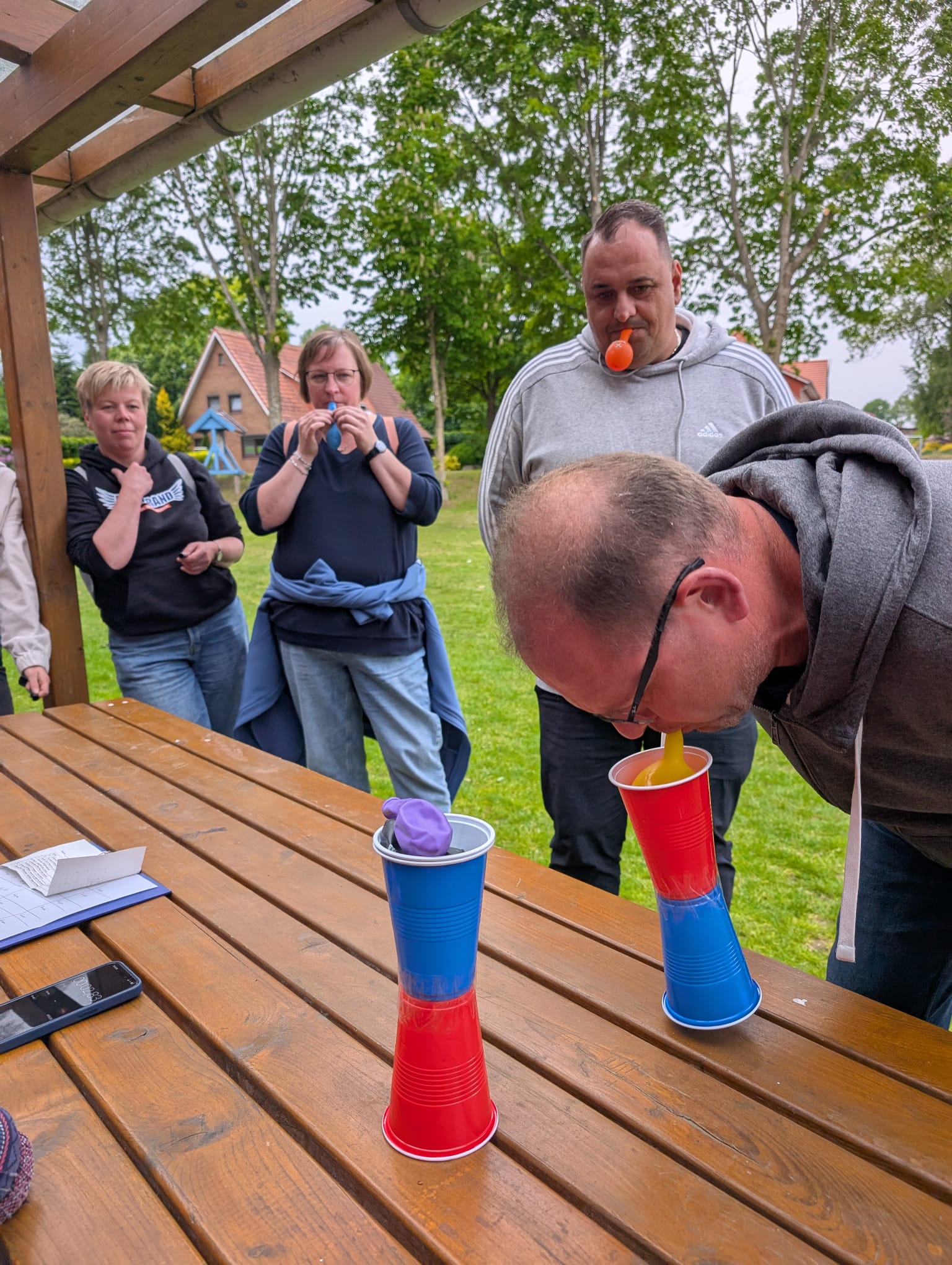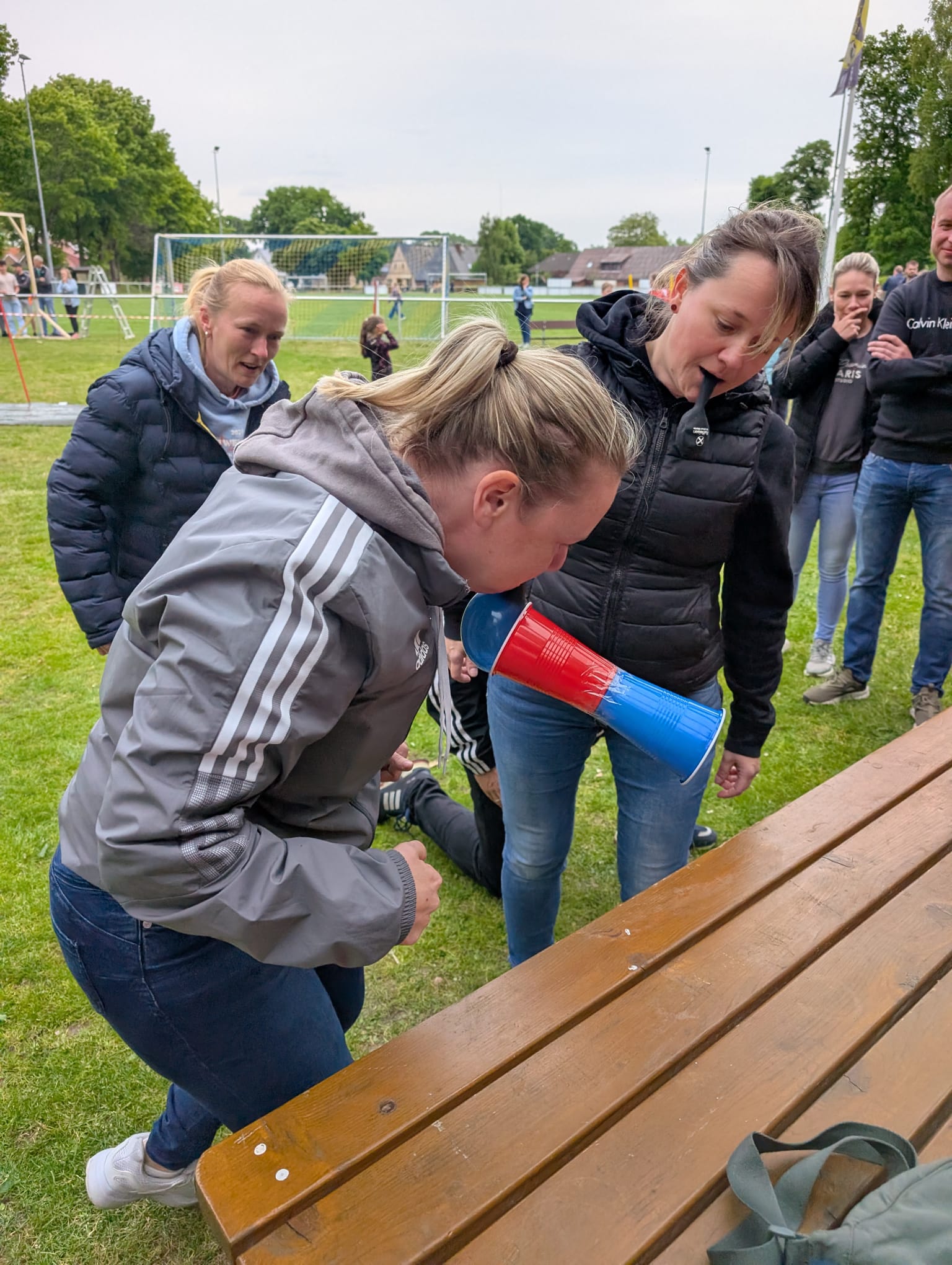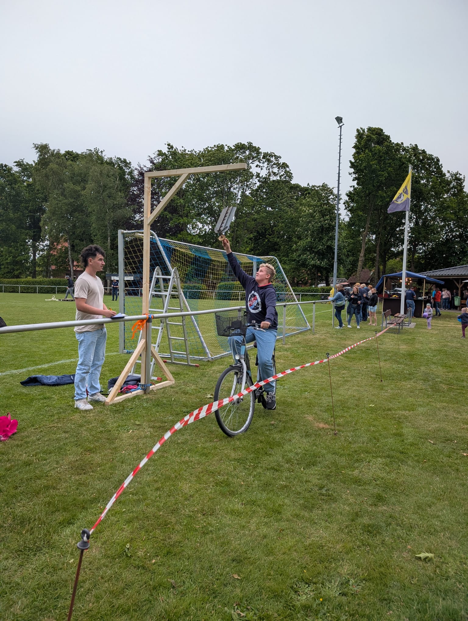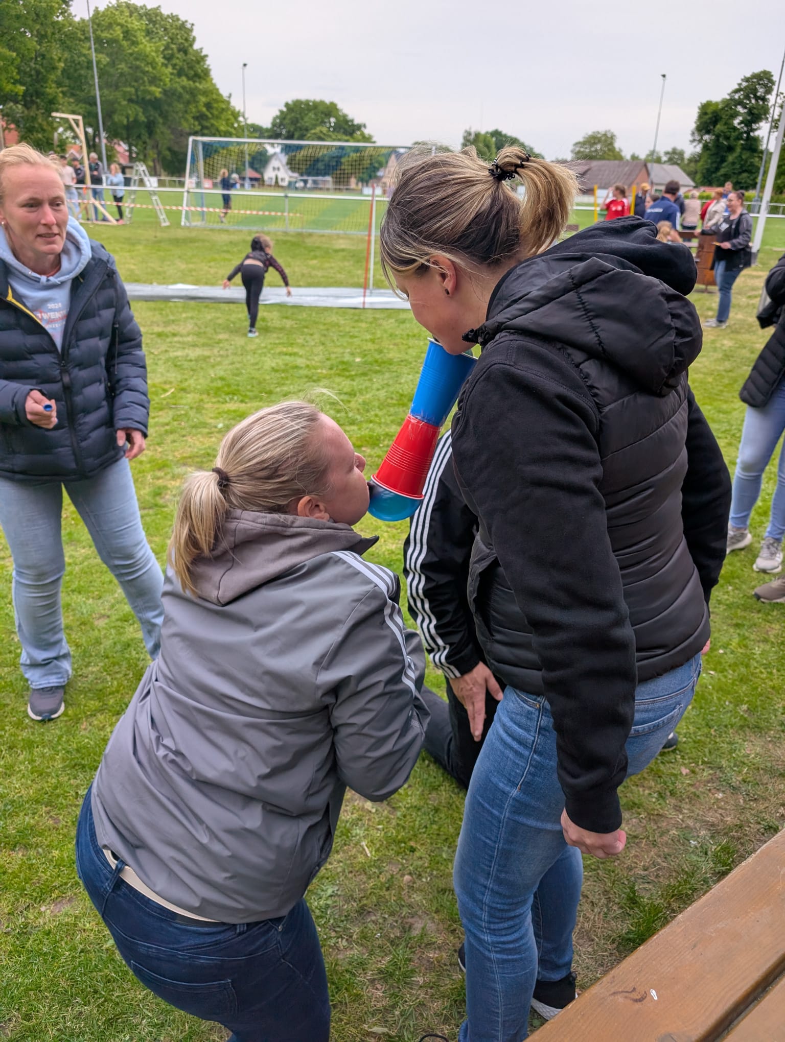 Am Samstag ging es dann bei wechselhaftem Wetter mit dem Sportwochenende weiter und startete mit dem Nachmittagsprogramm für die Kinder. An 8 unterschiedlichen Stationen, die je nach Altersstufe im Schwierigkeitsgrad variierten, hatten die Kinder sichtlich Spaß daran ihre spielerischen Aufgaben zu erfüllen. Neben einem Parcours, Leitergolf und Stab balancieren ging es weiter mit Bierdeckel werfen und einen Turm aufbauen. Währenddessen gab es im Sporthaus ein großes Angebot an Kaffee und Kuchen. Insgesamt waren 40 Kinder am Nachmittag auf dem Sportplatz und erhielten nach den Spielstationen ihre Platzierungen mit diversen Preisen, die zur Auswahl standen.