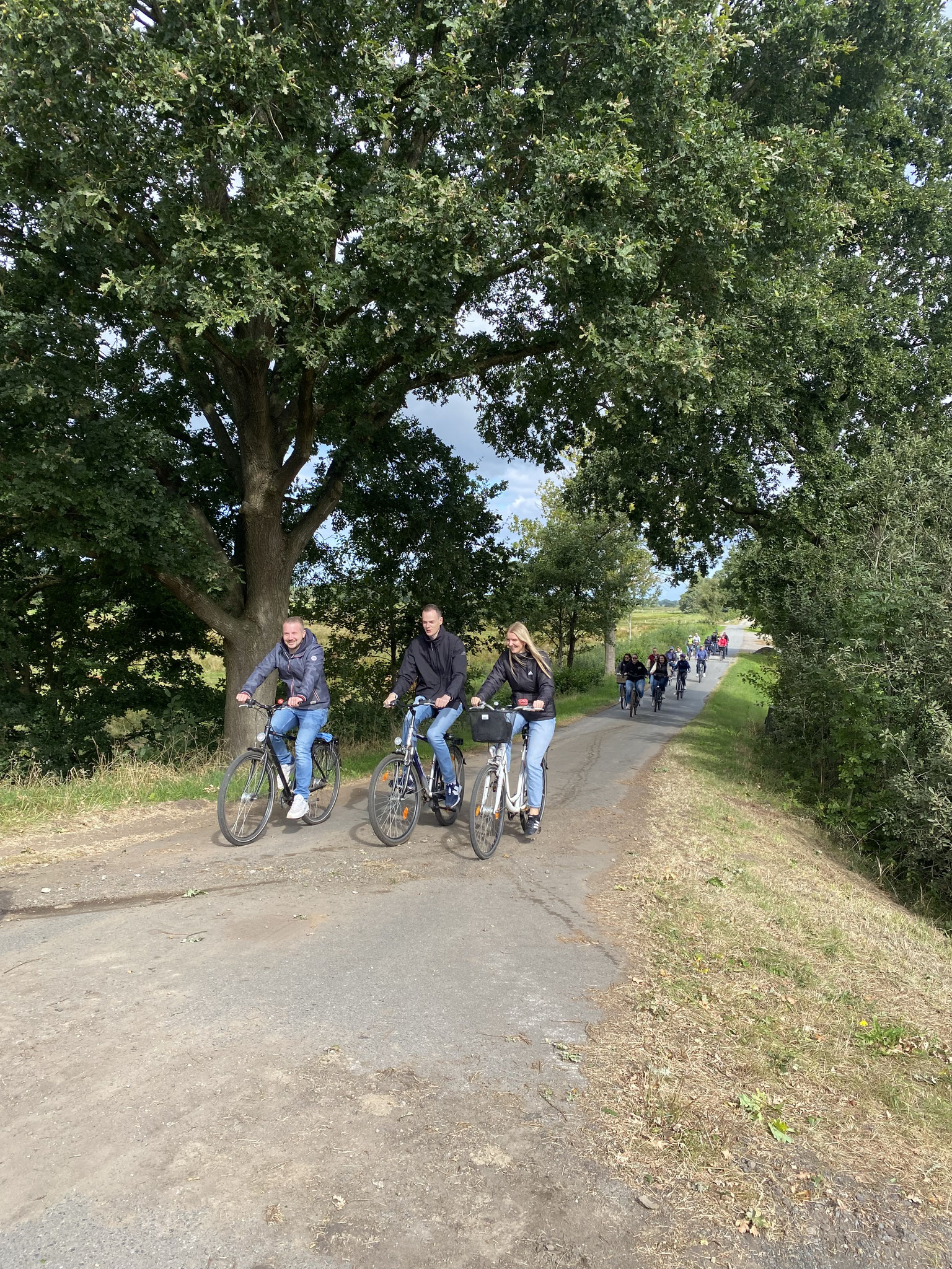 Am 24. August fand wieder unsere alljährliche Flögelner Fahrradtour statt. Bei Sonnenschein und angenehmen Temperaturen starteten wir die Tour morgens mit knapp 40 Teilnehmern am Sporthaus in Flögeln. Zunächst fuhren wir über Steinau über das Süderende, weiter Richtung Höring. Hier machten wir auf halber Strecke Rast mit erfrischenden Getränken und kleinen Snacks. Dann ging es weiter in Richtung Bederkesa, über Waldwege nach Fickmühlen und zuletzt erreichten wir wieder den Sportplatz in Flögeln.